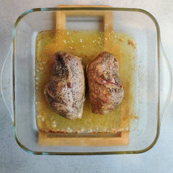 Cover and allow to marinate at least an hour at room temperature or up to 24 hours in the refrigerator, whichever is more by this time the duck breasts will be uniformly pink throughout.